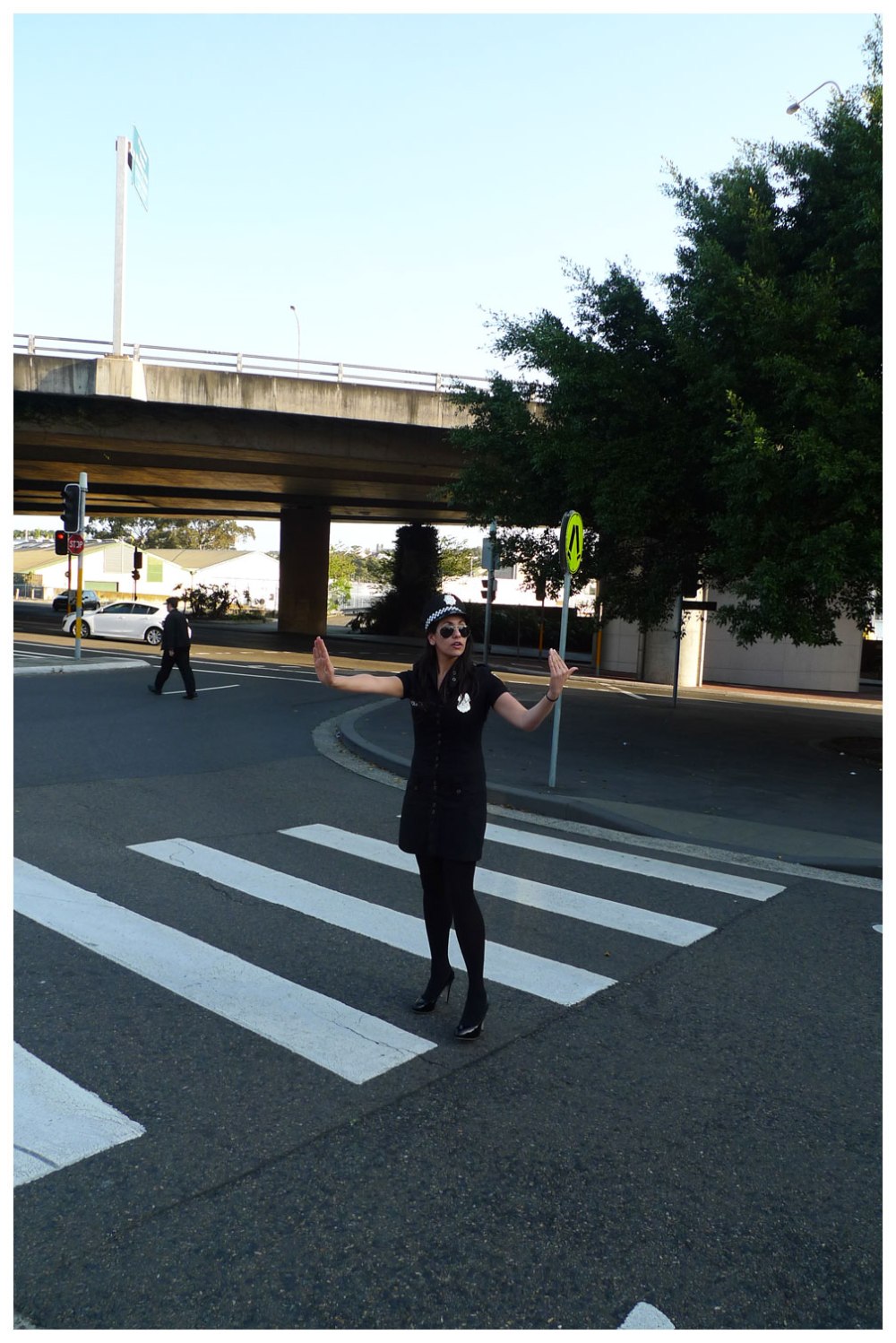 In 1987 President Reagan proclaimed September 11 Emergency Number Day…which in Australia would be 000 not 911. The first thing I thought to dress up as was a police officer. And I’ve landed somewhere in between that and a stripper that dresses as a police officer. So much so that as I was preparing to take this photo I saw the broadest, happiest smile I have ever seen on a cyclist’s face ever. Plus an old man stopped to ask “Can I have one?”. I’m not sure EXACTLY what he meant by one, but it probably wasn’t good. What is it about a girl in uniform?