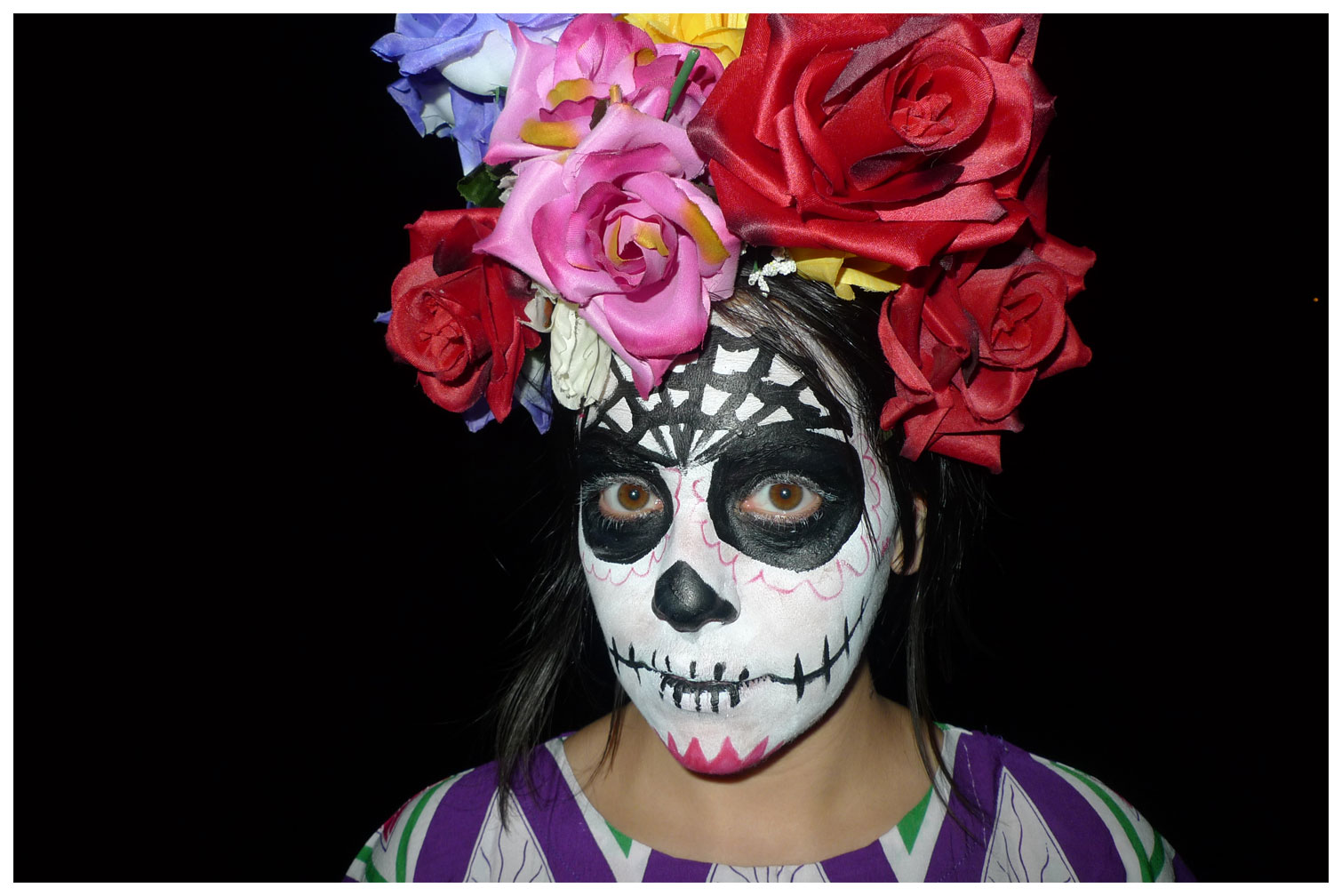 Day of the Dead face and flower headpiece Posted by mhsaba on November 1, 2012 Share this: Click to share on Facebook (Opens in new window) Facebook Click to share on Pinterest (Opens in new window) Pinterest Click to share on X (Opens in new window) X Click to share on Tumblr (Opens in new window) Tumblr Click to email a link to a friend (Opens in new window) Email Like Loading...