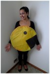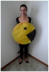 Today I take on the user suggestion of Pac Man from Kylie3036. I’ve gone for the main yellow character which I’ve made from putting crete paper over a hula hoop and attaching a string to it so that it can sit around my neck. This is the cheapest and easiest way to make a Pac Man costume.