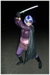 Today I have taken on the user suggested theme of Kick Ass from Cilla. With that as my theme I have dressed up as Hit Girl – the young, smart ass vigilante who was trained by her father (played by Nick Cage) to be a costumed superhero/assassin.