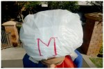 Racing Helmet: Bicycle Helmet covered in White plastic Bags