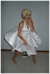 June 1 is Marilyn Monroe’s birthday. Marilyn Monroe was the original blonde bombshell. Men wanted her, women wanted to be her, even today, decades later she is still a sex symbol in popular culture. Today I have dressed as her in that famous white dress from Seven Year Itch…isn’t it delicious? And yes, that is a fan behind me that I’ve used to reproduce the flowing skirt.