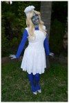 Today I am taking on the user-suggested theme of The Smurfs, dressing up as the only female Smurf, Smurfette. As a child I LOVED the Smurfs, but a couple of years ago I bought a DVD of the show and when I re-watched it, let me tell you that it does not hold up. Not even nostalgically and that made me sad. Plus, I look terrible in blue makeup, but a quick google search tells me that no-one can pull off blue-face…