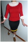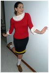 Like most people I grew up watching Popeye, so today I’ve dressed up as Olive Oyl. It’s a great simple costume to put together – all you need is a red jumper and a black skirt!