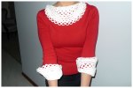 Red jumper: Uniqlo with doily trimmings