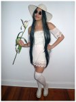 Today I have dressed as young Yoko Ono, aka her era with John Lennon in the 60’s/70’s. This costume is easy so long as you have a big white floppy hat and circular glasses.