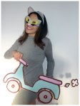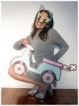 Today I have dressed as my favourite Facebook sticker character – Pusheen! While there were a few emoticons to choose from with Pusheen, one of my favourites is when she is on her scooter, which is the one I have chosen to re-create.