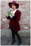 While at my friend’s house last week, I spied in her closet an amazing red velvet coat. It is with this red velvet coat that I have been able to create today’s Theodora, from the film Oz, turning into the Wicked Witch of the West costume.