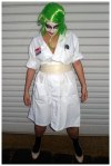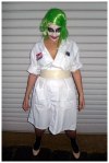 Everybody knows that the creepiest characterisation of Batman’s, The Joker, is Heath Ledger’s portrayal in Batman: Dark Knight. One of his creepier moments was when he showed up at the hospital to mess with Harvey Dent, dressed in a nurse outfit. With my hands on a lab coat that I could turn into a nurse outfit, how could I pass up the opportunity to looked really horrific. One more day to go!